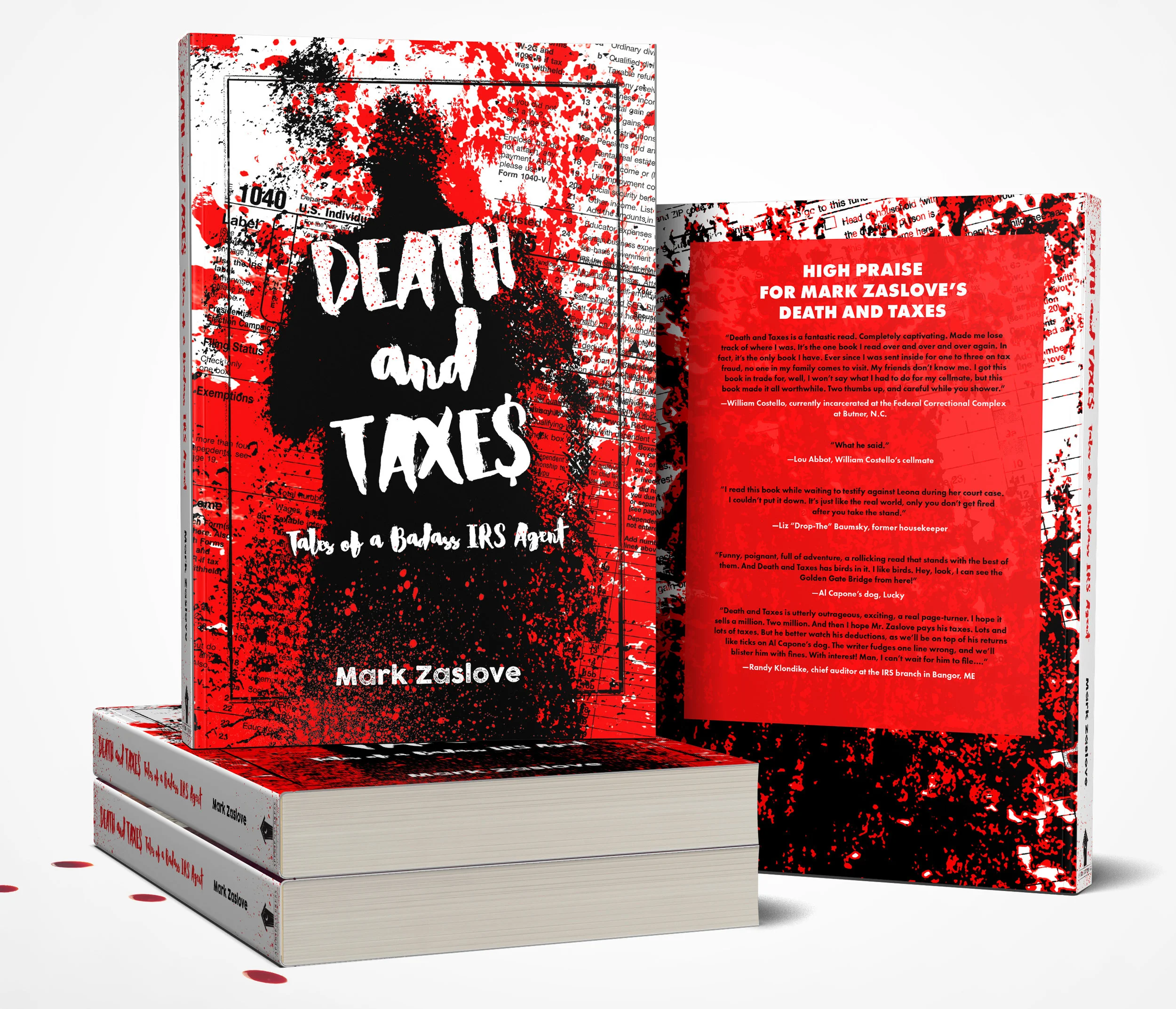 Finally, one day, he got fed up with the rigorous structure of scriptwriting and everyone giving him notes and decided: “WTH! Time to stretch my legs, step on the gas and write a novel for the sheer fun of it!” And voila, almost before you could say “Death and Taxes,” the book was done. What’s more, it’s just the first in a series of fast-paced thrillers following the escapades of IRS agent Mark Douglas and his band of merry revenuers as they bring justice to those in great need of same, while collecting your Federal dollars along the way. Hey, for both Marks, it’s a living.